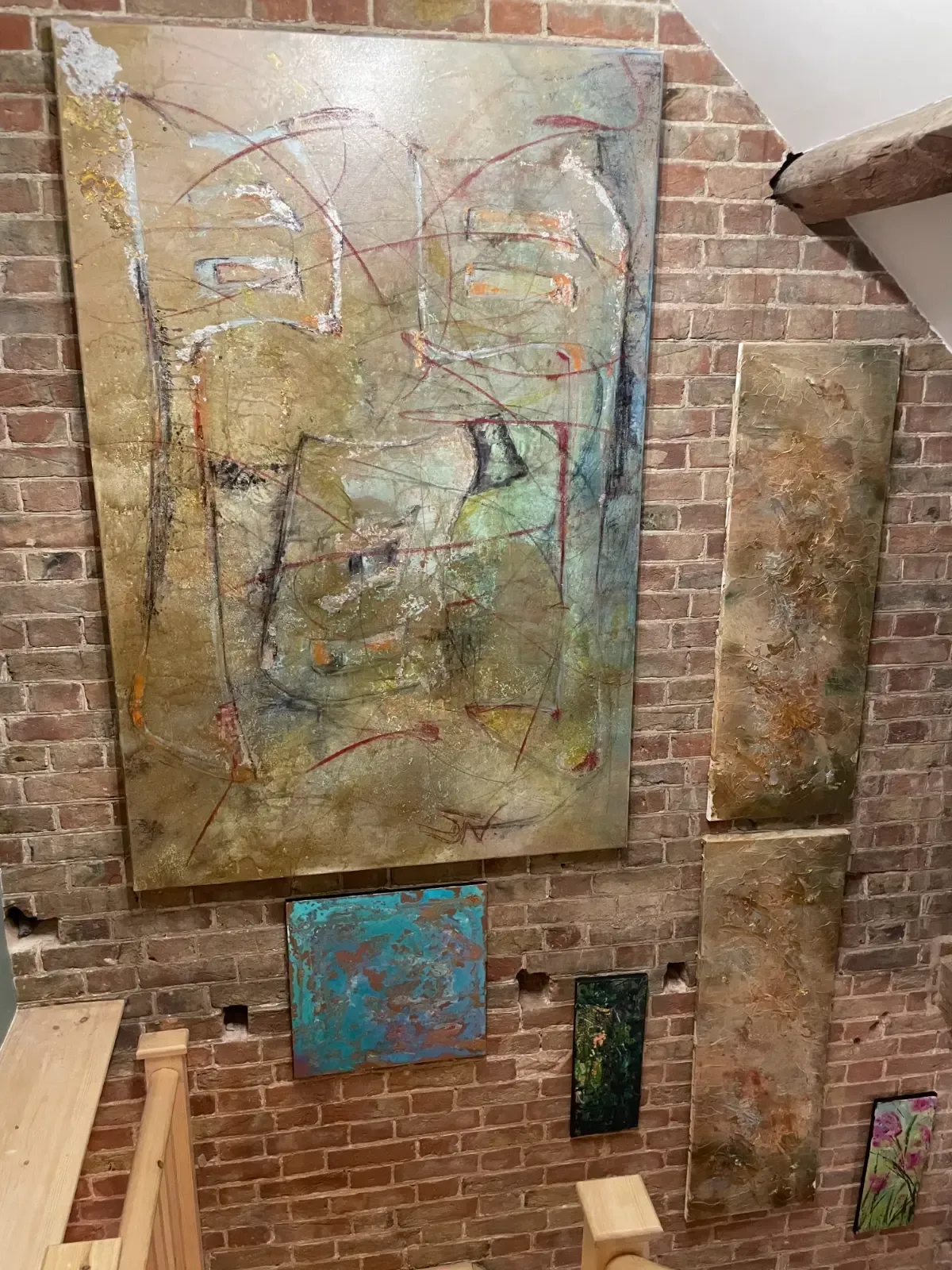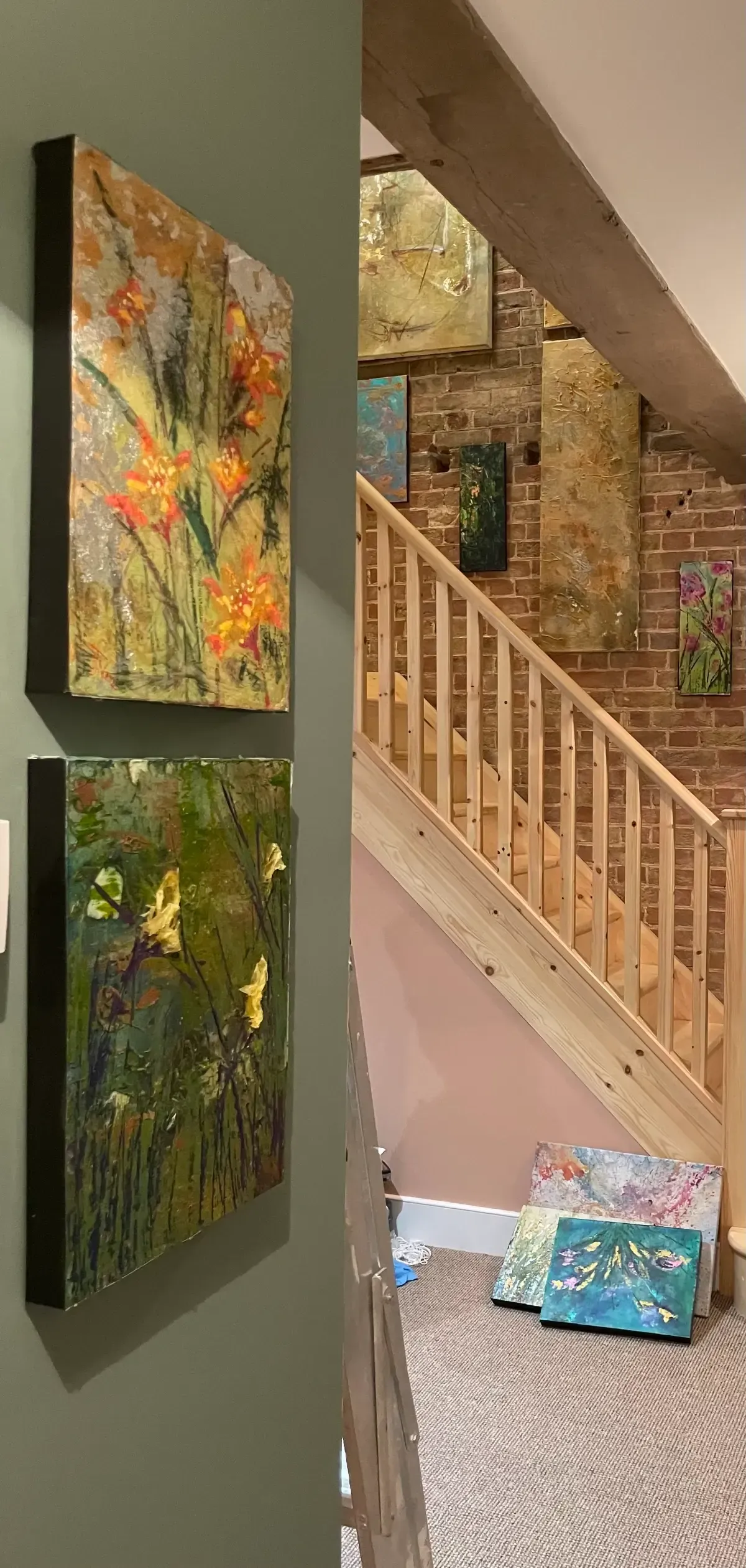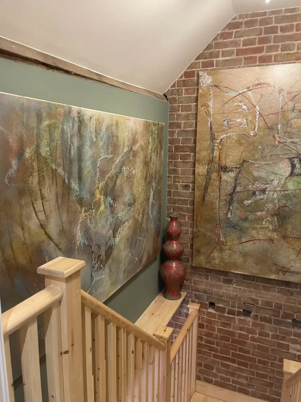 Thanks to the patience of Pip and Lang several of my recent paintings are now hanging up at home, freeing up space in my studio! Thank you Pip & Lang!